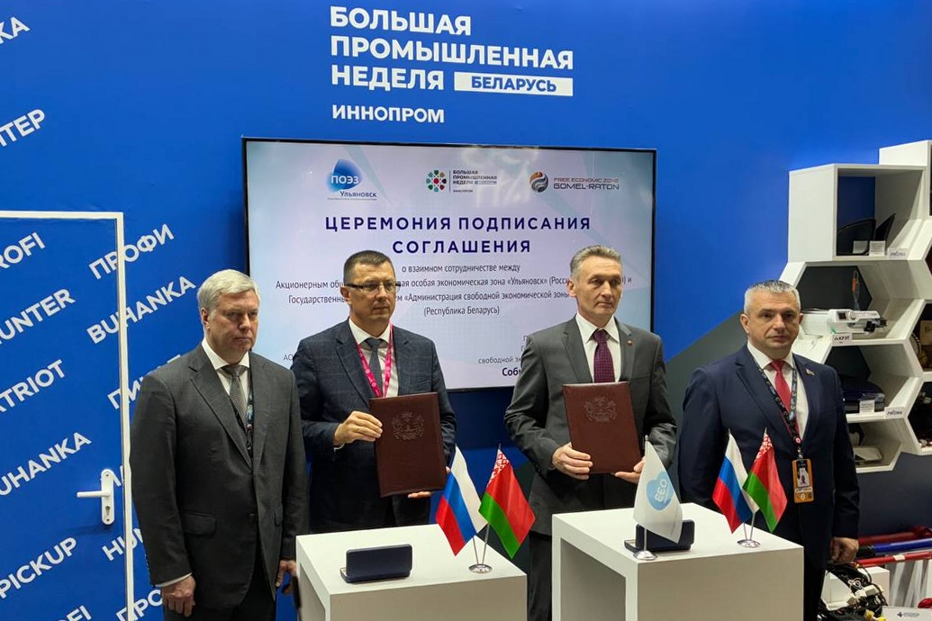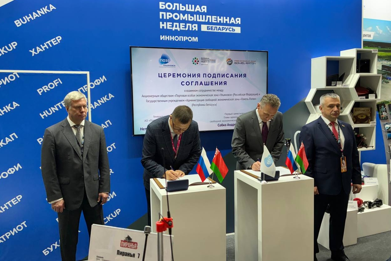 Сегодня первый заместитель главы администрации СЭЗ «Гомель-Ратон» Андрей Собко в ходе встречи делегации Гомельщины с представителями бизнеса Ульяновской области в рамках работы на международной промышленной ярмарке «Иннопром. Беларусь» подписал Соглашение о сотрудничестве с портовой особой экономической зоной «Ульяновск».
