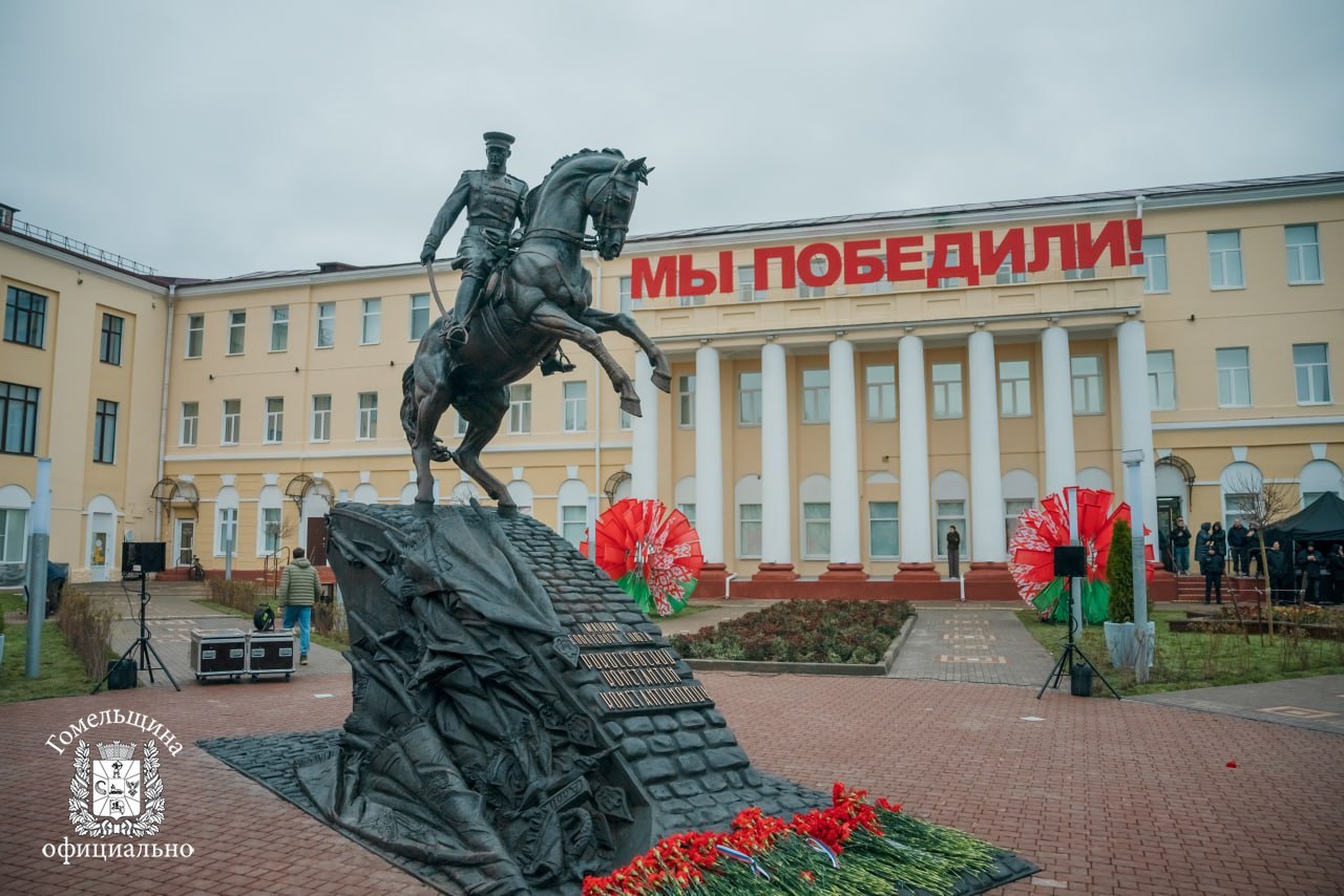 Маршал Рокоссовский сыграл ключевую роль в завершении нацистской оккупации Гомеля. Бронзовая скульптура изображает исторический сюжет, когда Константин Константинович верхом на коне участвовал в параде 1945 года на Красной площади. В церемонии открытия приняла участие делегация из России, в том числе внук полководца Константин Васильевич Рокоссовский.